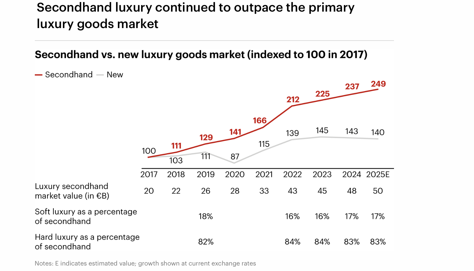 > Outlets and secondhand gain ground: Outlet stores outperformed full-price retail, and the secondhand luxury market grew to an estimated €50 billion, outpacing sales of new luxury goods.
