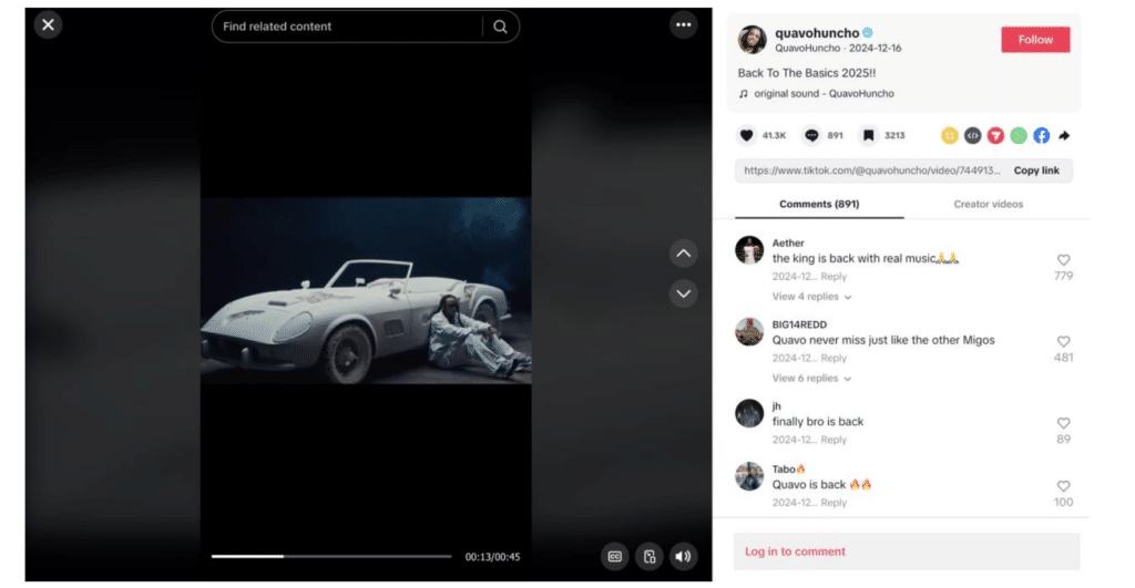 In the newly-filed complaint, Arsham maintains that Quavo’s “Back to the Basics 2025” promotional video unlawfully incorporates his Ferrari-centric sculpture, which is registered with the U.S. Copyright Office. Specifically, he claims that the “infringing video features Quavo performing in front of the artwork,” which is featured “prominently” throughout the 45-second video. In addition to posting the video on his Instagram and TikTok accounts in December 2024, the lawsuit maintains that Quavo posted still images from the video that featured the sculpture on his Instagram and tagged Arsham’s account, a move aimed at “capitaliz[ing] on” Arsham’s name and reputation for his “own financial gain.”