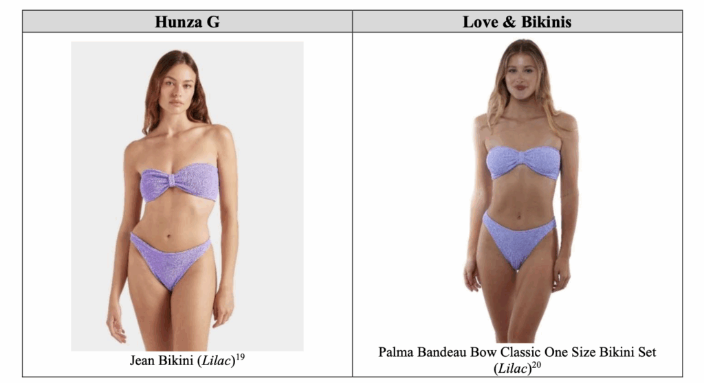While much of the legal scrutiny in recent years has focused on the booming “dupe” economy, where fast fashion and low-cost players replicate high-end designs at a fraction of the price, this case does not necessarily fit the traditional mold. Love & Bikinis’ products are not drastically less expensive than Hunza G’s; for example, Hunza G’s signature square-neck one-piece sells for $255, while Love & Bikinis’ version retails for $190. That price point proximity suggests the issue is not about affordability or access, but about brand positioning and commercial identity – making this dispute as much about who gets to claim authenticity as it is about potential consumer confusion.