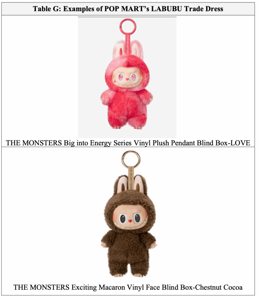 In terms of its IP, Pop Mart asserts that has “registered federal trademark rights in the POP MART, LABUBU, and THE MONSTERS marks, and common law trademark rights in the marks; unregistered federal trade dress rights in the design and appearance of the LABUBU products; and U.S. copyright registrations protecting product and packaging designs in the LABUBU Blind Box Series.” And with such rights in mind, Pop Mart sets out claims of direct federal trademark counterfeiting and trademark infringement, trade dress infringement, and copyright infringement as it did in its initial complaint.