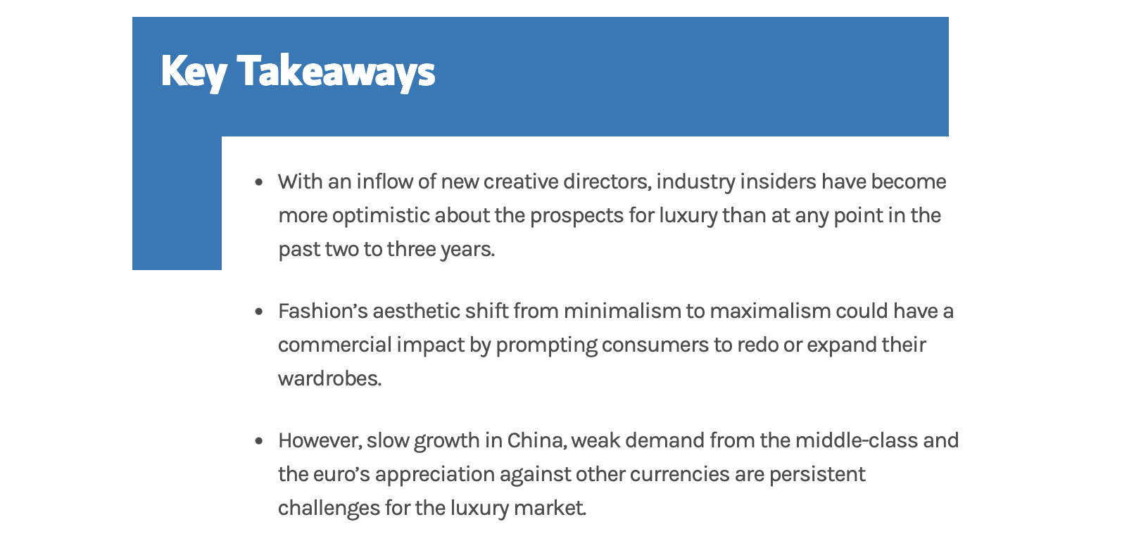 Industry feedback is upbeat, with buyers and editors warming to the newcomers’ work, including that of Jonathan Anderson at Dior and Matthieu Blazy at Chanel but the bank still models sub-trend growth through 2026 given soft China demand, a squeeze on middle-income shoppers, and FX headwinds. Net-net: creativity is improving the bull case – especially if U.S. wealth effects hold and China’s markets stay firm – but any recovery is likely to build gradually rather than snap back.